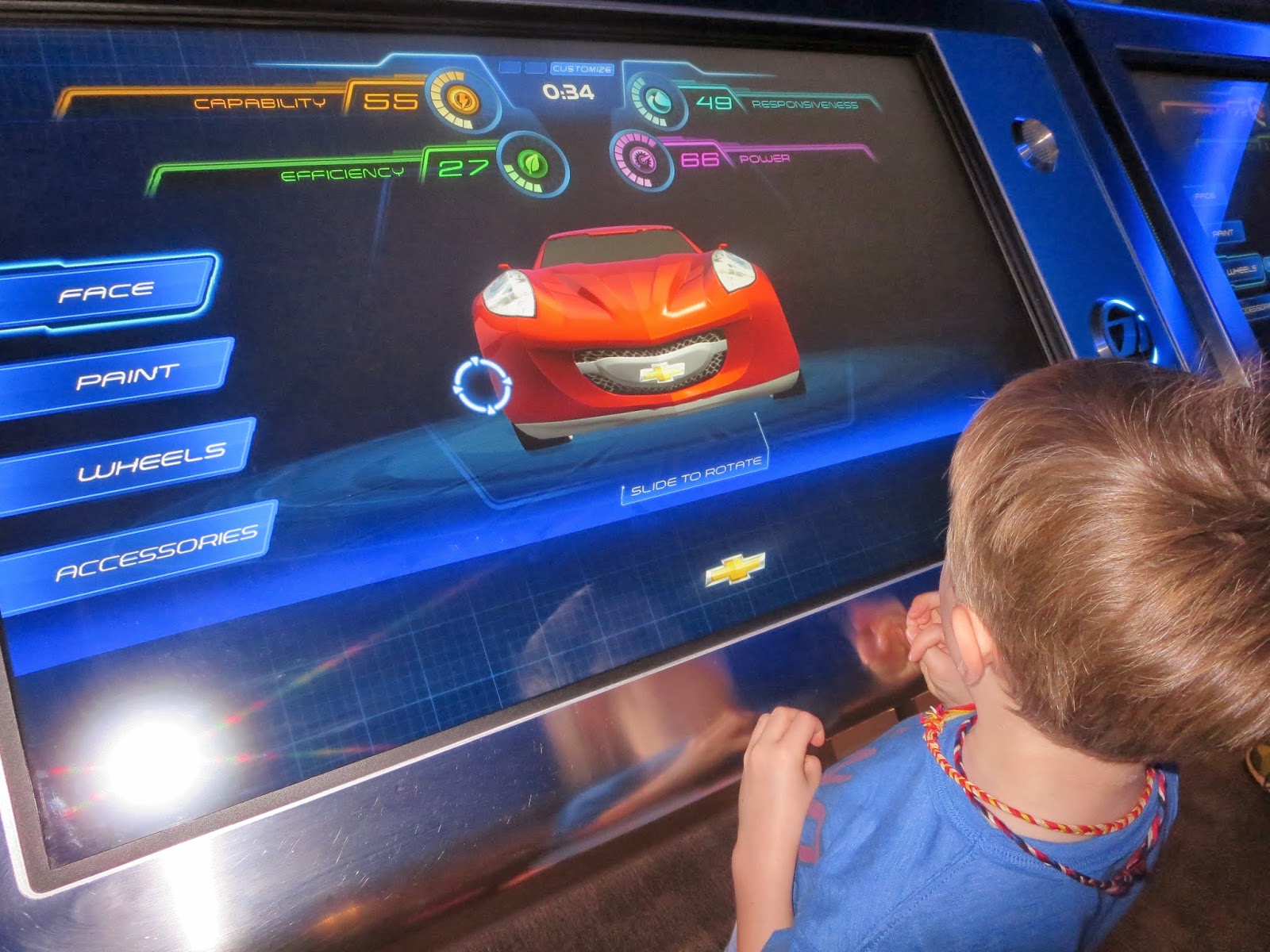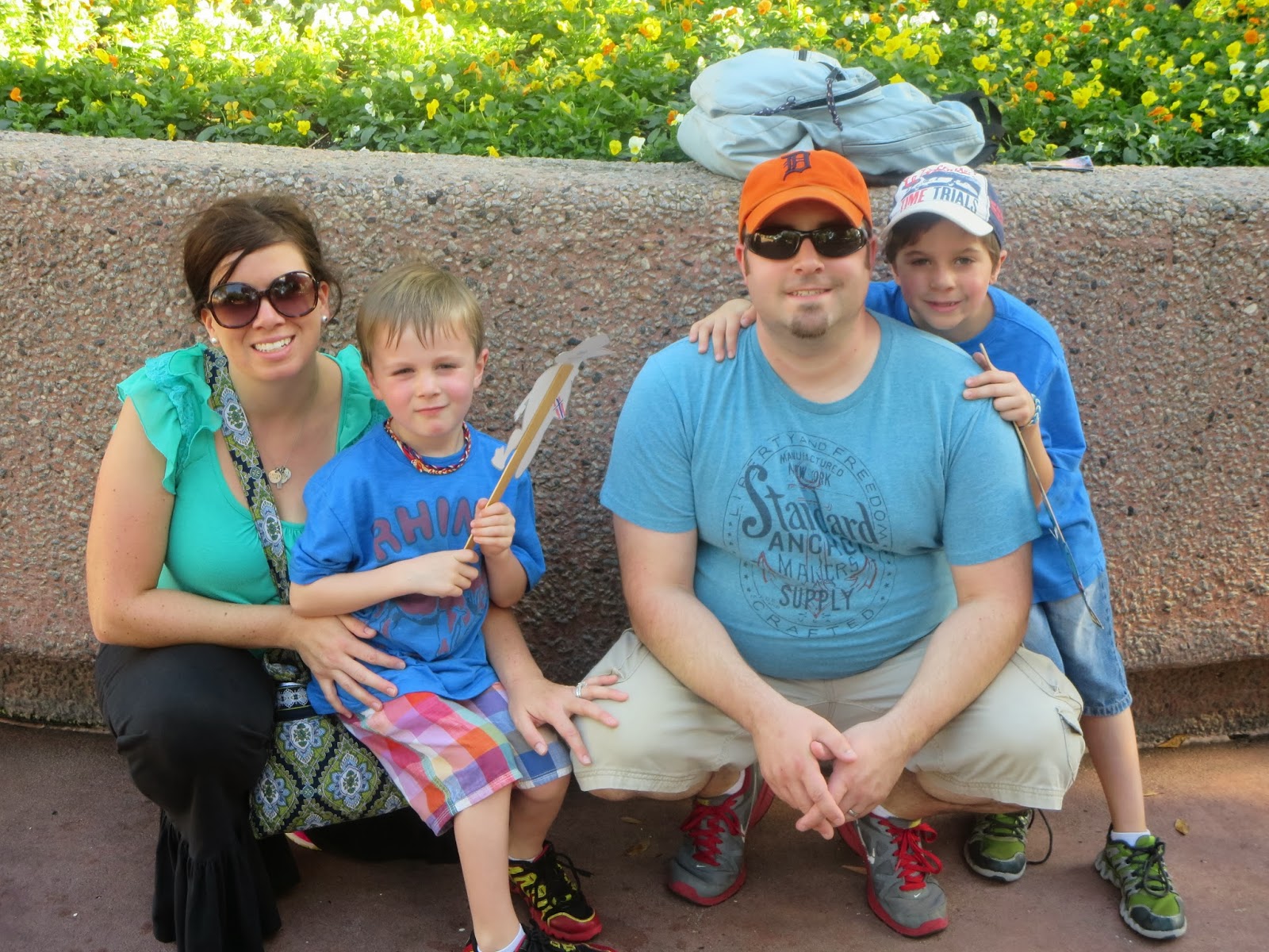 Mom had kept Amelia at the condo since there weren’t many rides for her at Epcot. We decided to head to Test Track first (10min wait!), as the boys were really excited to make their own cars. Porter, again, became anxious before getting on the ride, and was saying he didn’t want to ride it. By the time we got off he was crying. GAH! Never would have thought he wouldn’t like it!
