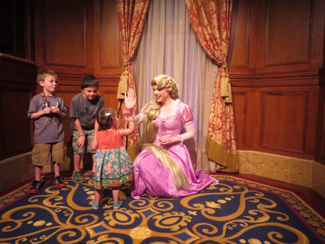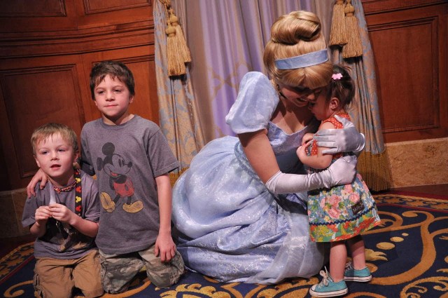 Since we didn’t get to ride Peter Pan on Thursday, Ryan headed straight there once we got inside. The kids and I took our time wandering Main Street trying to figure out where the characters were going to be so we could see them. Turns out the disperse all throughout the lands of Magic Kingdom so we decided to head back and meet Ryan in Fantasyland.