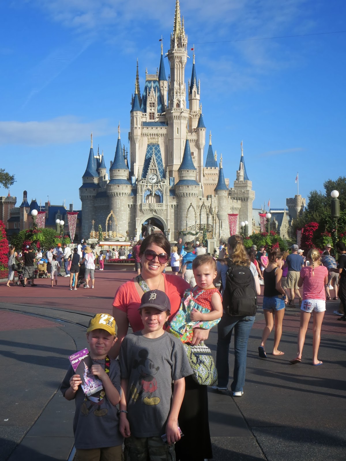 We watched the parade- awesome. Kids loved it. Then we went to head back to the castle and the streets were packed. See… the parade ended in Frontierland which meant by the time it ended for us it had been over for awhile back on Main STreet… thus the crowds had filed in and packed the streets before we even finished watching the parade. We had barely got in sight of the castle and the castle projection show started. And at this point Porter had to take a dump BAD…. he has his father’s stomach and he had to get to a bathroom ASAP. Well, Ry took him so my mom, the kids and I tried to get in view of the projection show- one of THE main things I soooo wanted to watch. The crowds were awful, it was hot, sticky and claustrophobic. UGH. We barely got to see the show and then we met up with Ryan and by then the fireworks started and we were behind a tree with terrible view of the fireworks. I was bummed. Porter was whiny and wanted to go back home. We made him stick it out for a little bit while we took Hudson on Thunder Mountain Railroad one last time and then we headed home. I was disappointed that our evening was cut short. I figured Fantasyland would have low crowds since a lot of little kids head home to sleep and we’d be able to get on some of the rides quickly but Porter wanted nothing to do with it.