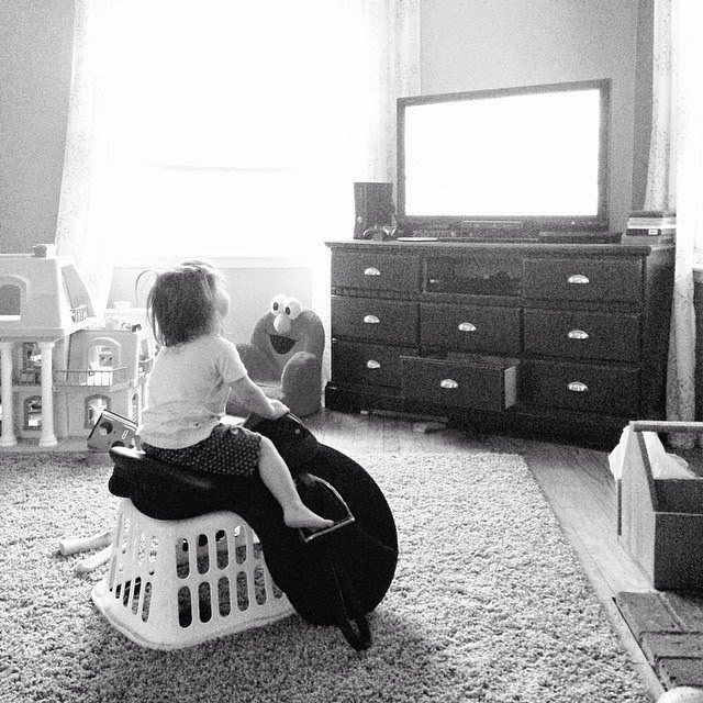 April 30, 2014April 27, 2019 Well, how do you watch tv at your house? kids, No Comments Amelia Oh, not sitting in a saddle? Huh. That’s strange. I brought my saddle home to clean it and Amelia insists on “riding horsey” on it throughout the day. And, well… watching tv in a saddle seems like a great idea too, right? Like Loading... Related