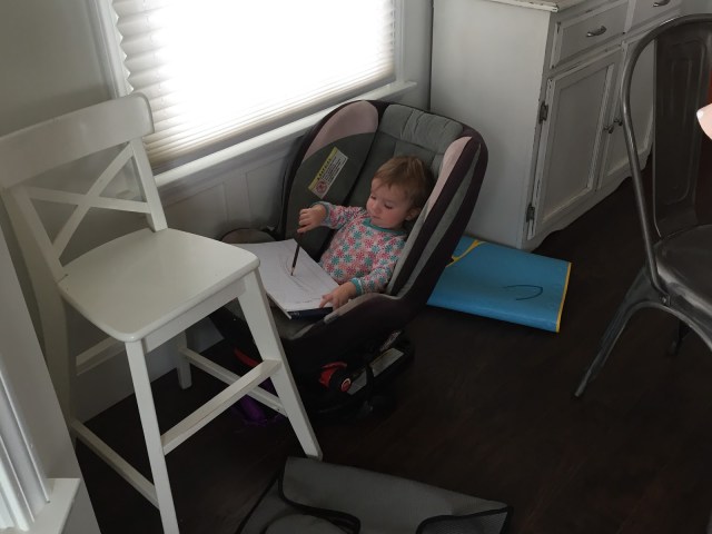 September 17, 2016March 5, 2019 Lulu kids, No Comments Eloise How is she so cute! She loves to “write”. She found a pencil and note pad and climbed in the old car seat sitting in the dining room to be tossed out. Like Loading... Related
