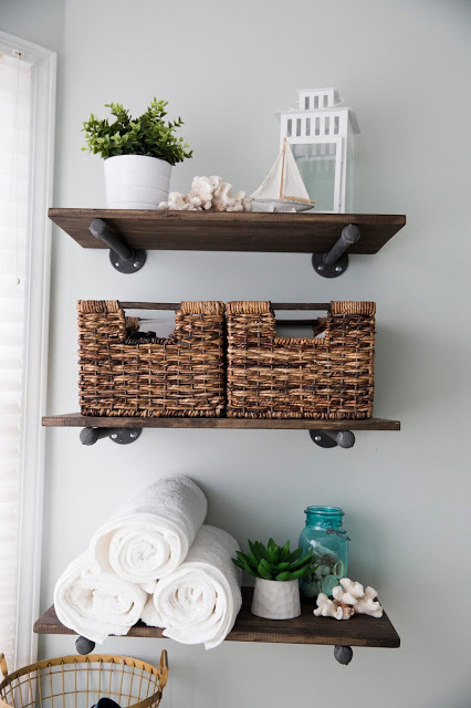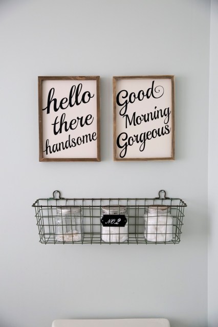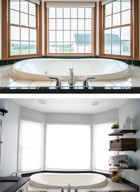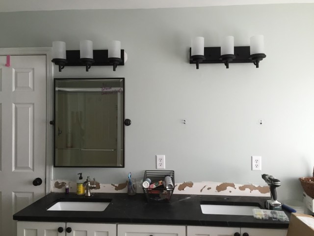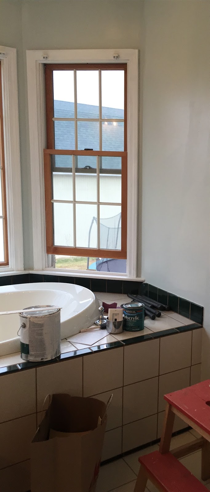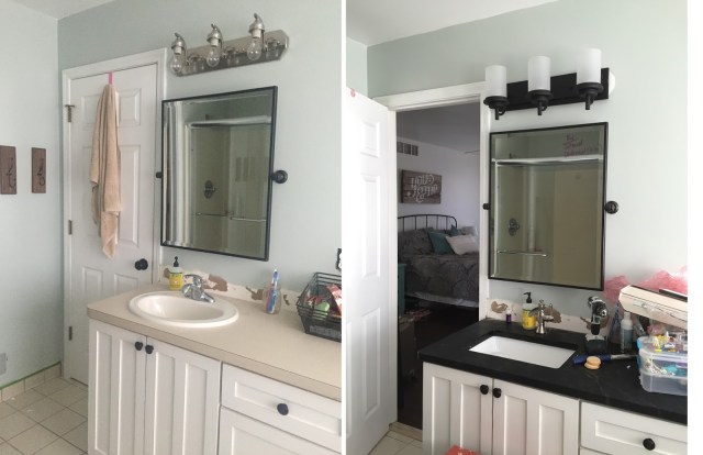 Then down came the mirror and up went some Sea Salt colored paint and white trim.
