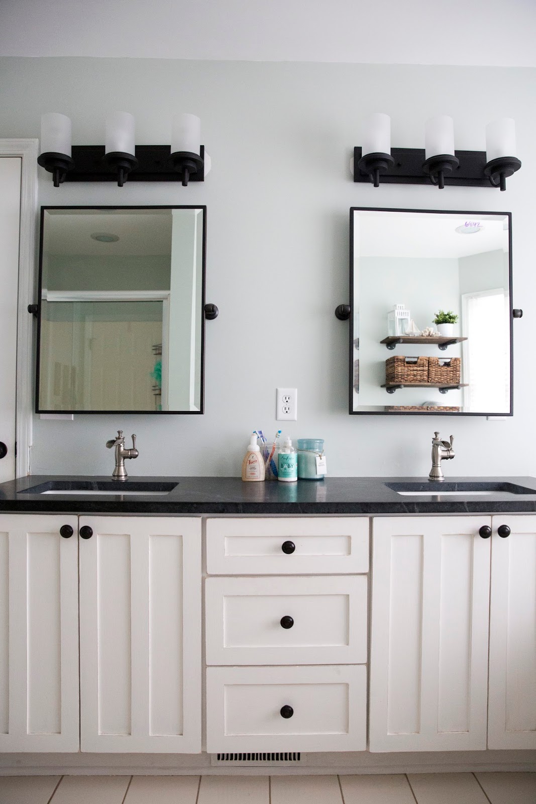 Now for the mirrors…. AHHH I splurged on these babies. I spent HOURS of my life trying to find them cheaper, but ended up buying them from Restoration Hardware. If you know me, you know I’ll spend far more time than necessary trying to find something at a better deal… and in the end I probably should just suck it up and pay the price. (Though lots of times I do find good knock offs! What can I say, I’m a bargain girl at heart!)