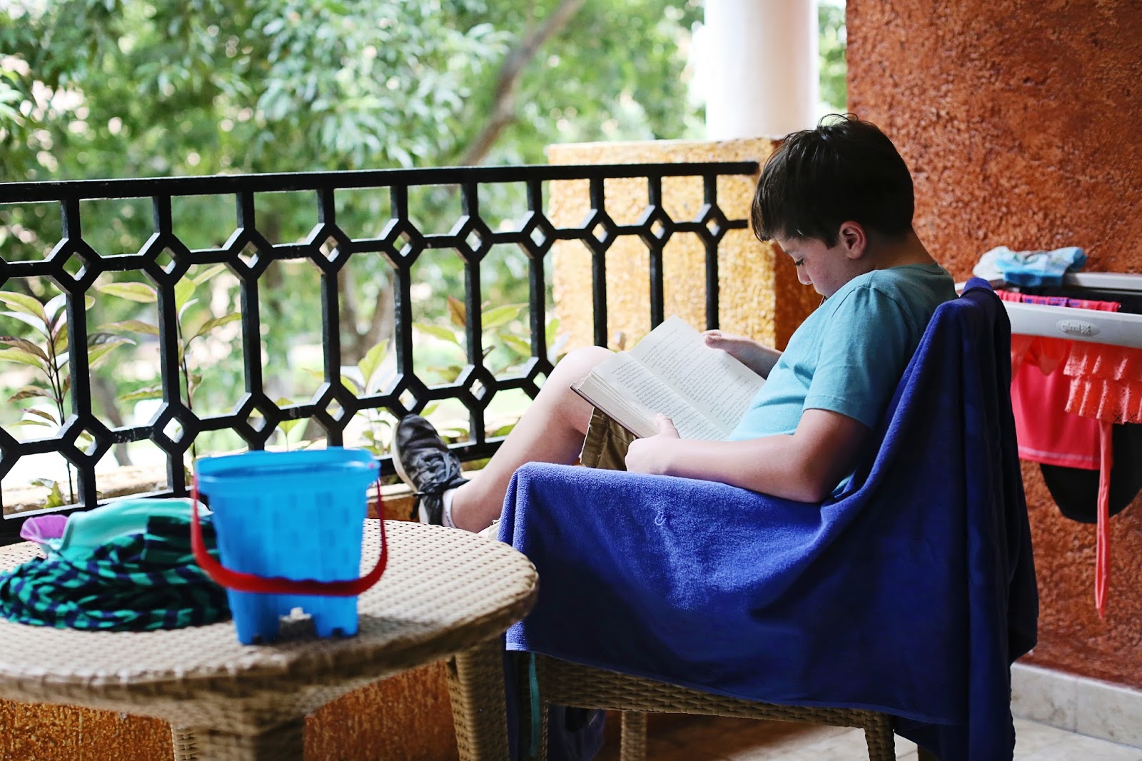 -we went down to the pool around 10am again- it seems to be the typical time we make it down there. It was an overcast day and thus a bit chilly, an rarely anyone was at the pool after half an hour or so.