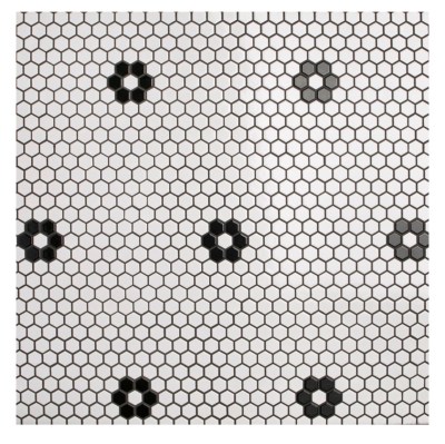 I was also picturing this penny tile with black flowers for the floor… but I think I’d have to forgo the wallpaper or do a more simple wallpaper?   I’m afraid it’d look too busy.