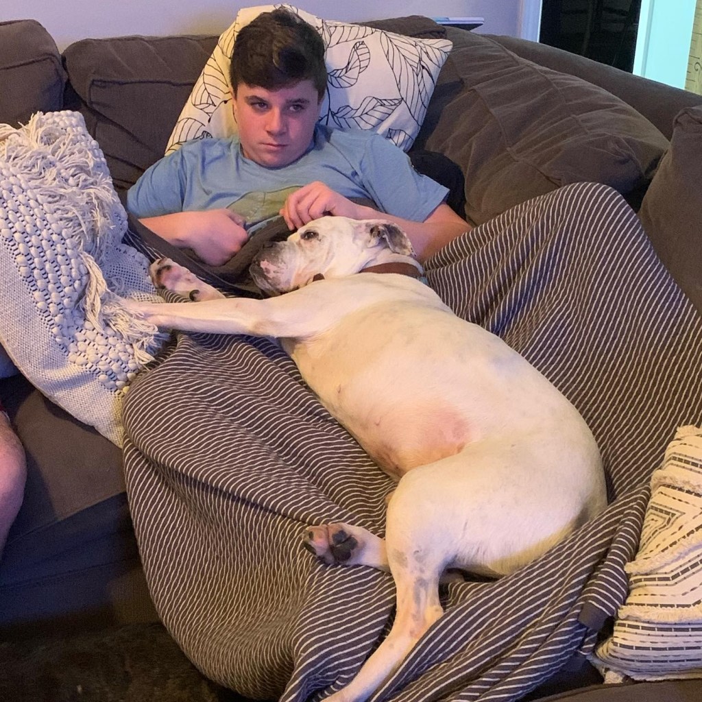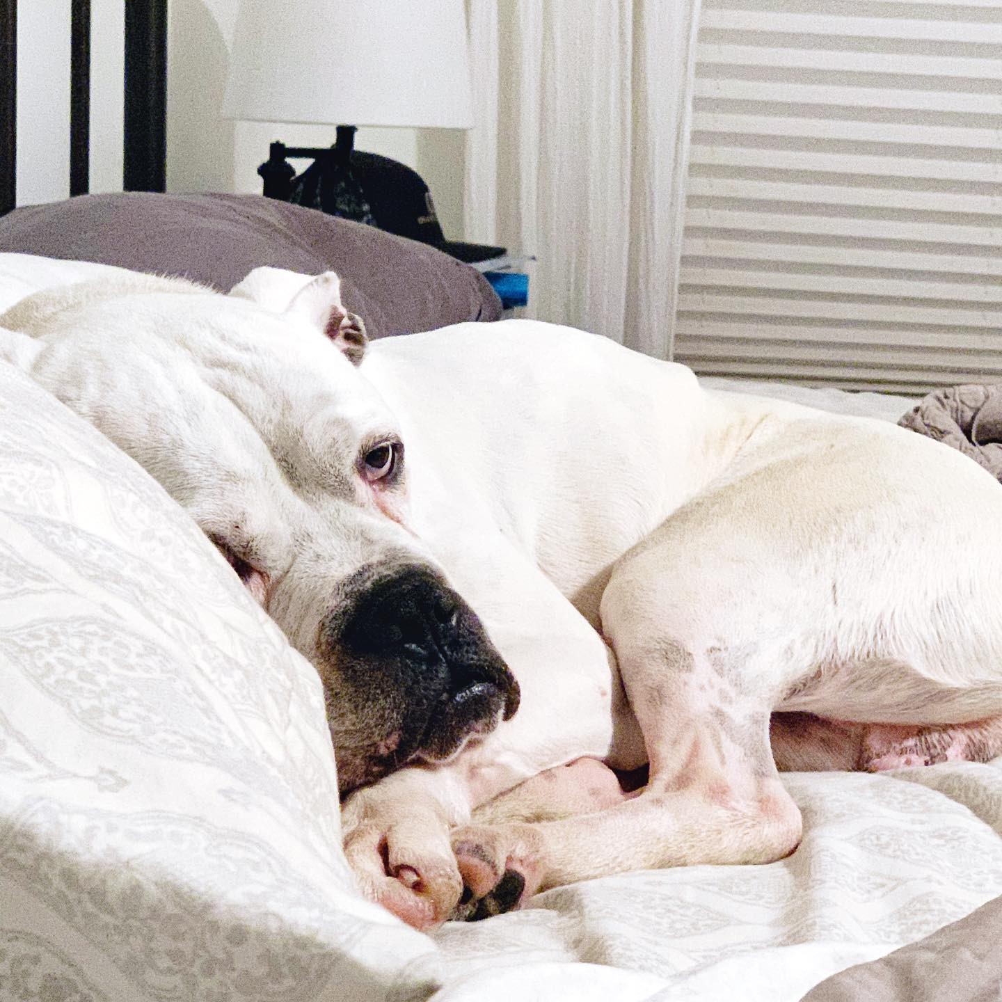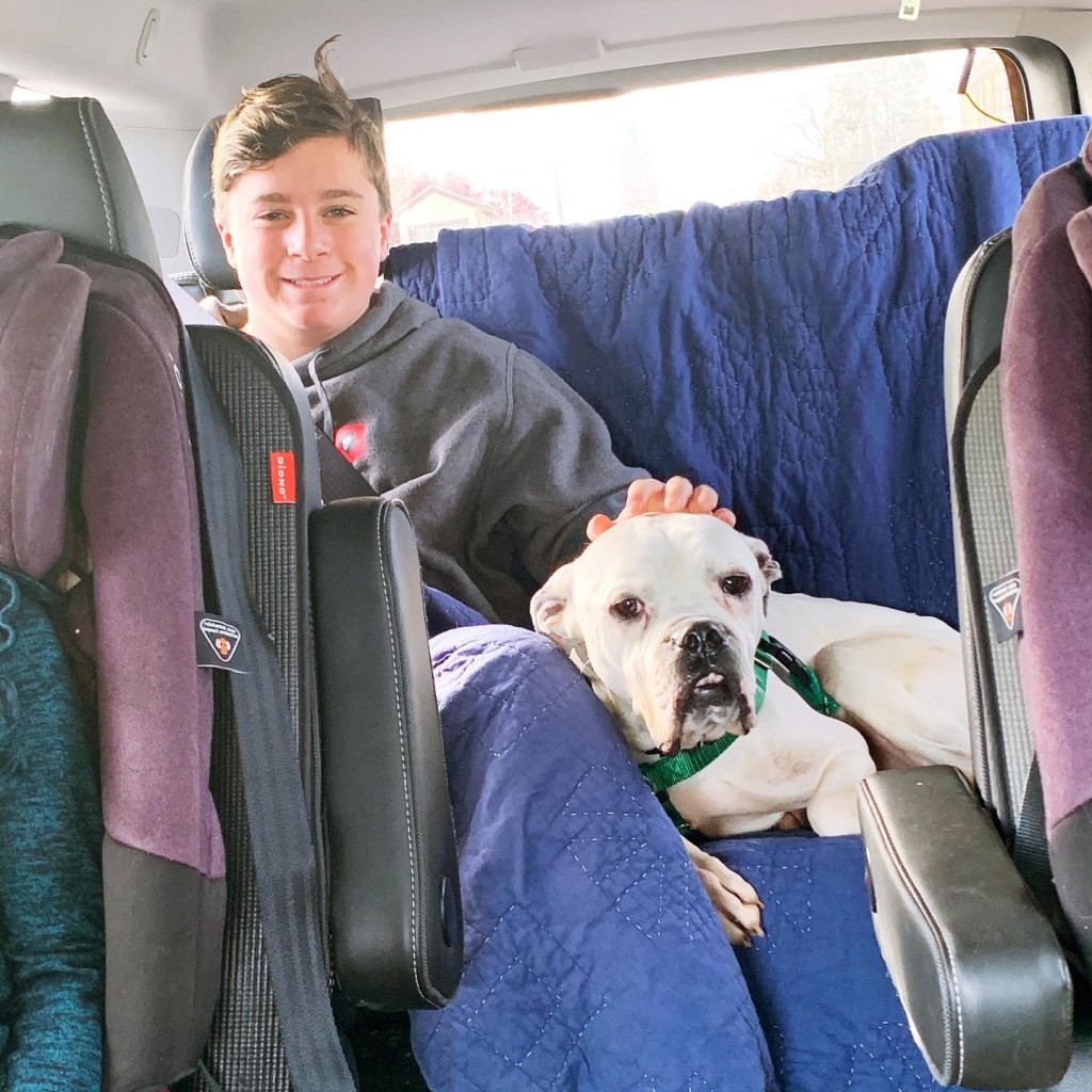In November of 2019 I saw this sad, snaggle tooth face on the Detroit Animal Shelter Facebook page. His eyes spoke to me. I knew there was something special about him immediately. We didn’t need another dog- we had 3 already, but something about this dirty white dog with big eyes and a snaggle tooth underbite told me he needed us. (And really I think it turned out to be we needed him more than he needed us). We had intended for Gus to be Porters dog. But he ended up capturing the hearts of everyone he met.