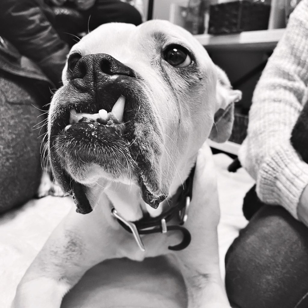 Gus is running with Drake tonight. My heart is broken and I’m not sure how it can be true that I’ll never see this toothy grin looking up at me again. I’m heartbroken. Heartbroken this happened so fast. Out of the blue. Heartbroken we didn’t get to have him pass in the comfort of his own home. Heartbroken it’s fucking frozen outside and I can’t bury him under the Death Tree on the farm. Heartbroken because 2 years wasn’t long enough.