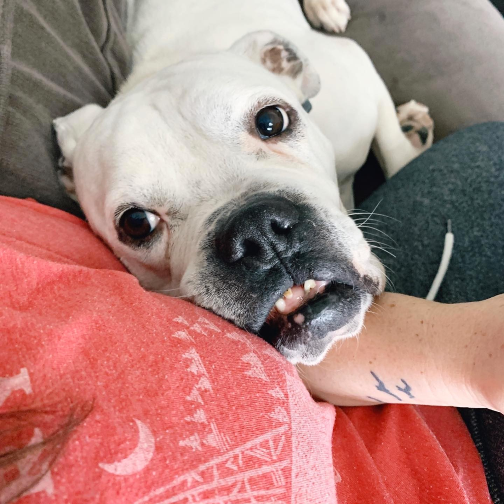 I’m going to miss squeezing his wrinkles under his neck. Hearing him snore so freaking loud. His underbite and snaggle tooth. I’ll miss hearing his snorts and deep breaths under the doors when he’s trying to find me. I’ll miss him pushing open the barn door to the bathroom when I am showering even though it was so annoying. I’ll miss his little groan as he would settle in to sleep after curling into a ball. I’ll miss that perfect divot between his eyes and nose that fit a kiss so perfectly. I’m going to miss seeing is big eyes looking up at me. I’m going to miss seeing the kids with him, him following us into the school room, laying in their forts, following me to my office to sleep on the couch while I work. Damn it. We should have had more time.
